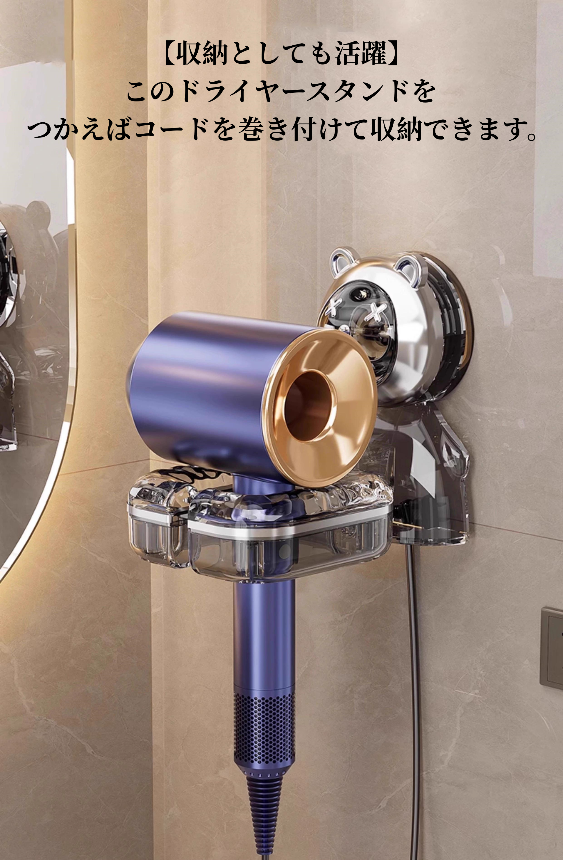 送料無料 ドライヤーホルダー ドライヤーフック ドライヤースタンド ドライヤー掛け ドライヤー収納 穴あけ不要 吸盤 洗面所 洗面台 バスルーム 日用雑貨 便利 3340