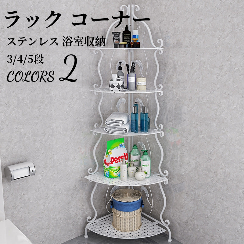 送料無料 ラック ステンレス 浴室収納 コーナー 突っ張り棒 バスルーム つっぱり バスラック 便利グッズ 3356