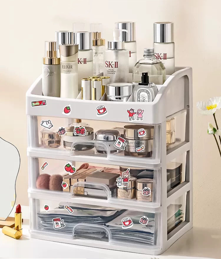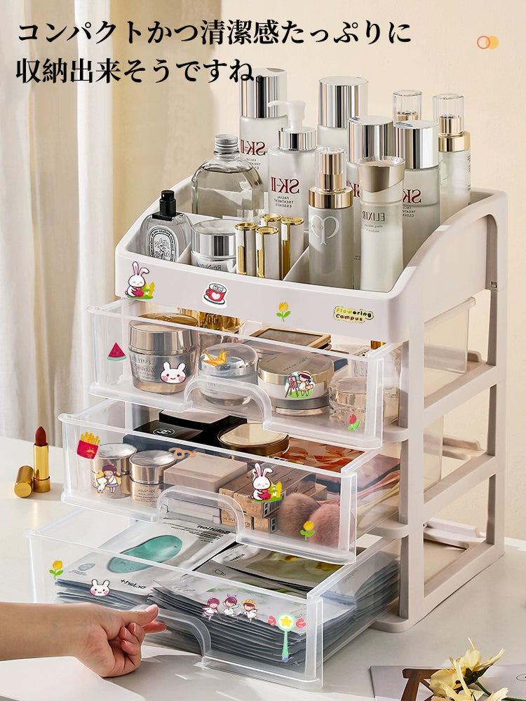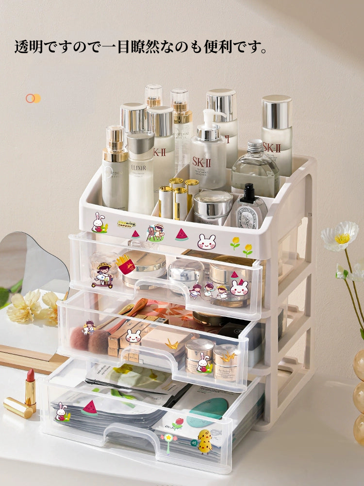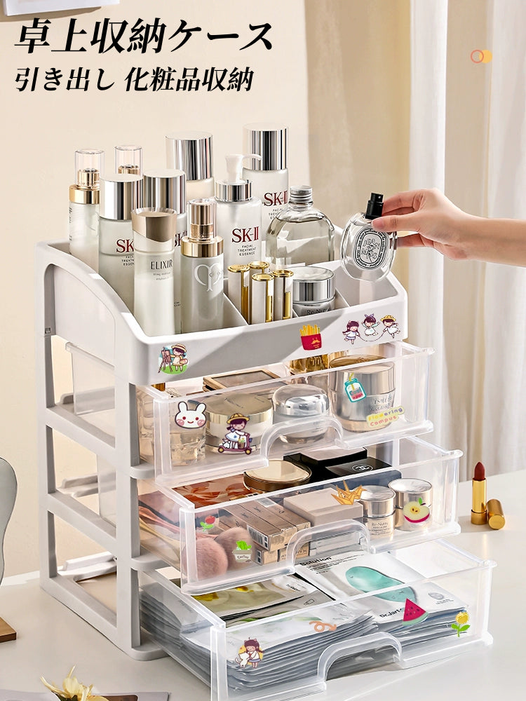 送料無料 卓上収納ケース 引き出し 化粧品収納 収納ボックス プラスチック 透明 2段 3段 4段 小物収納 小物入れ デスク収納 机上収納 積み重ね 机上ラッ 3407
