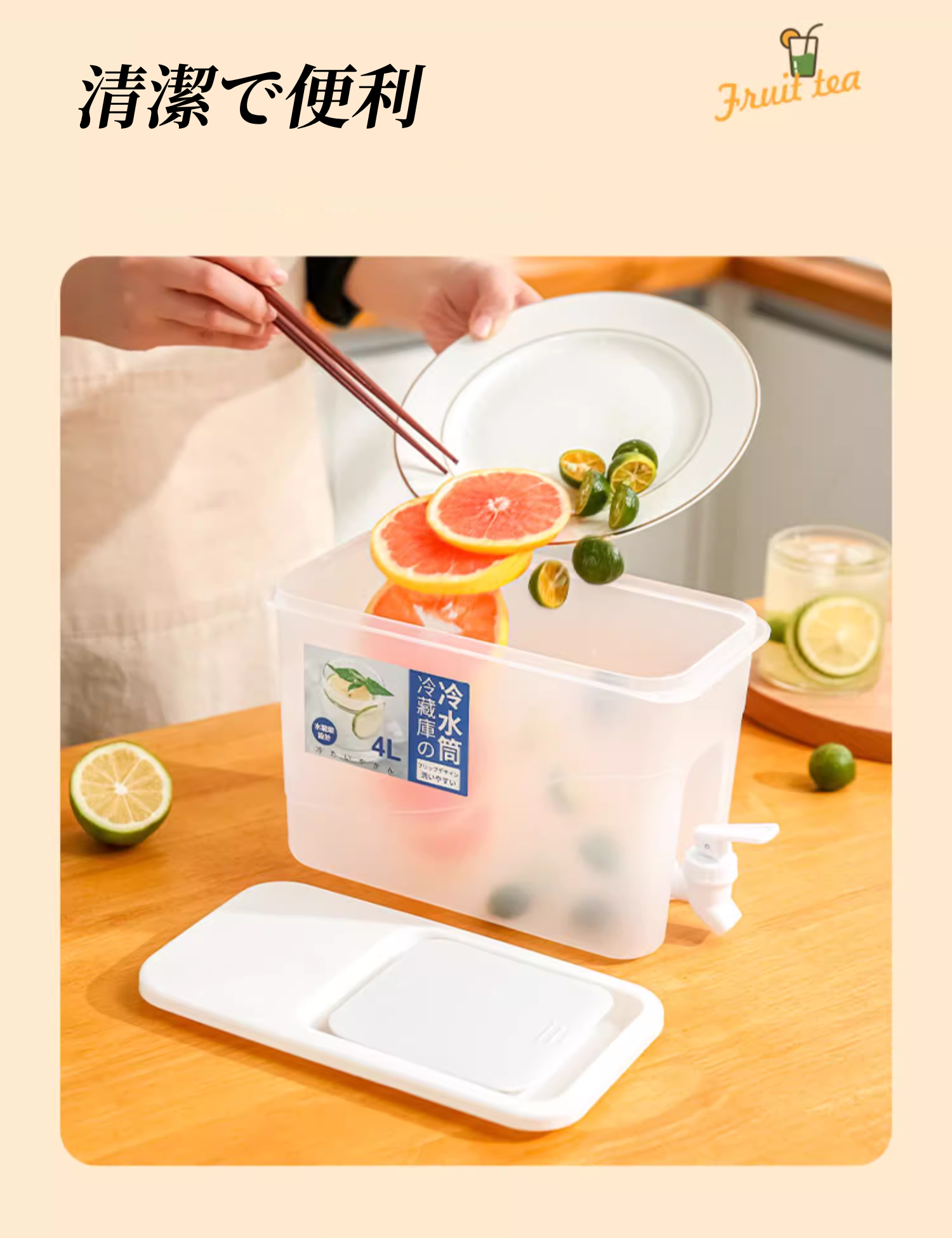 送料無料 4L 蛇口付き大容量冷蔵庫ドリンクサーバー プラスチック スタンド おしゃれ 家庭用  3266